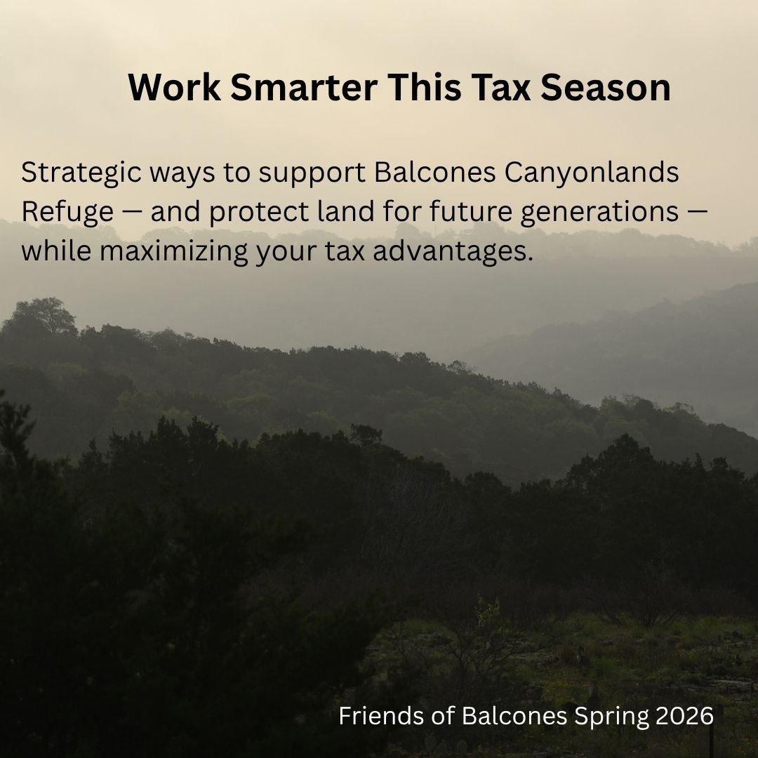 As you focus on your finances this tax season, Friends of Balcones wants to remind you that there are smarter and more strategic ways to support the Refuge and our partnership to share Balcones with the community and protect more land for future generations.